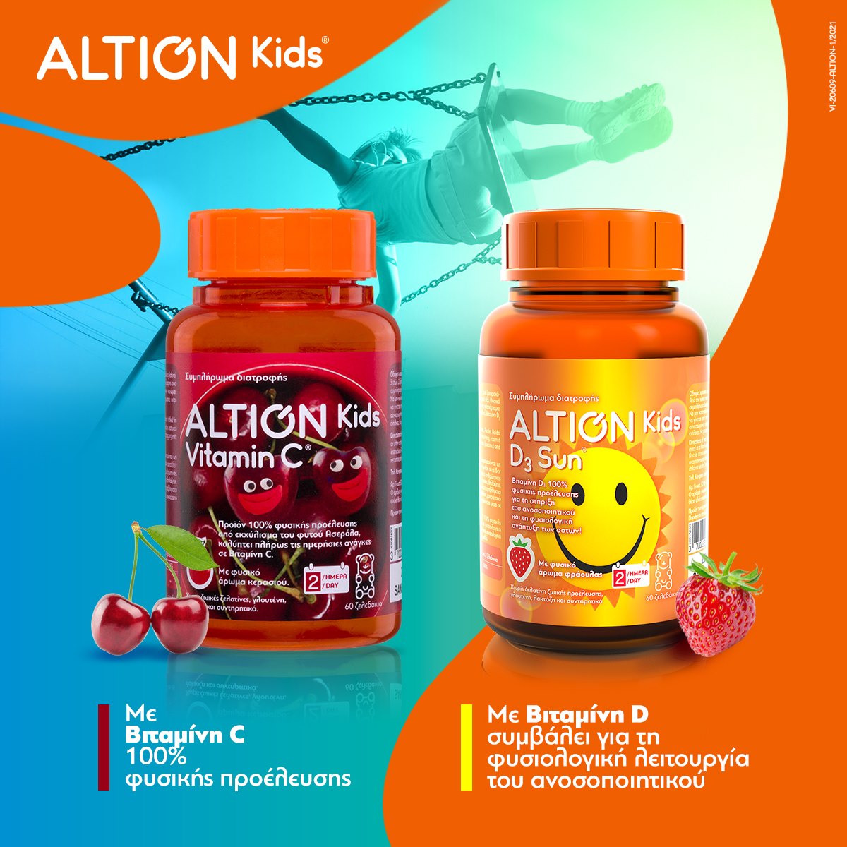 Altion Kids D3 Sun Παιδικό Συμπλήρωμα Διατροφής με Βιταμίνη D3 Φυσικής Προέλευσης για Τόνωση Ανοσοποιητικού, Σωστή Ανάπτυξη Οστών & Δοντιών, 60gummies