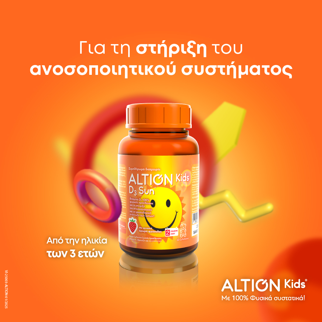 Το ALTION Kids D3 Sun είναι το πρώτο συμπλήρωμα διατροφής Βιταμίνης D σε ζελεδάκι με υπέροχη γεύση φράουλα.