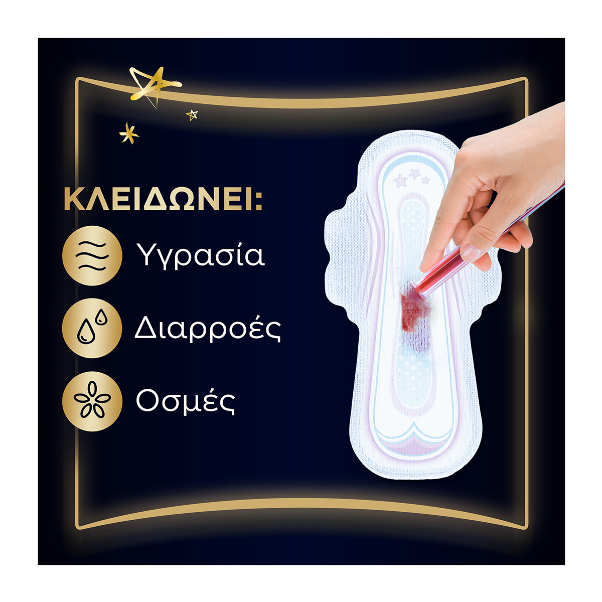 Το σύστημα InstantDry απορροφά τα υγρά σε δευτερόλεπτα και κρατά την υγρασία μακριά από την επιδερμίδα σας.