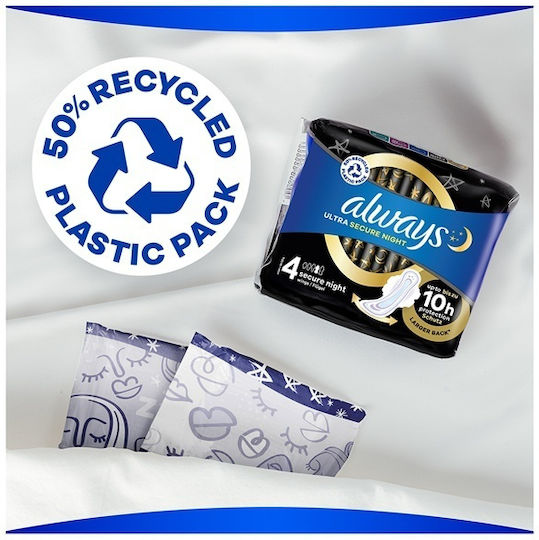 Απολαύστε καθημερινά ήρεμο ύπνο με τις σερβιέτες ALWAYS Ultra Secure Night (Μέγ. 4) με φτερά.