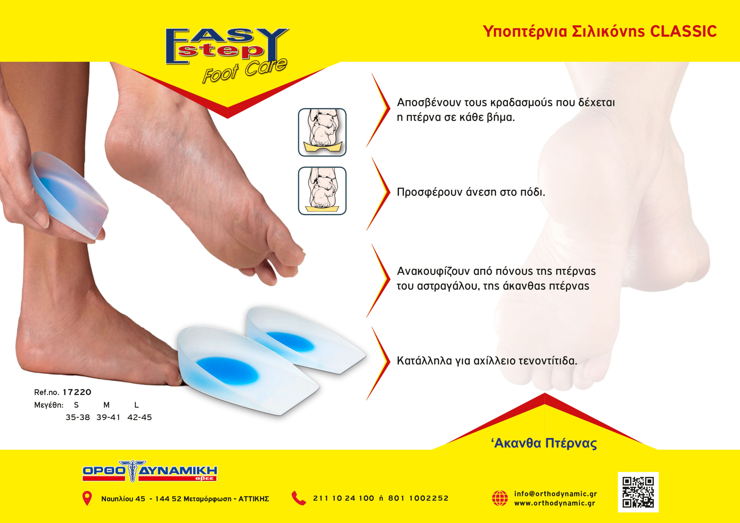 Προσφέρουν άνεση στο πόδι, ανακουφίζουν από πόνους της πτέρνας, του αστραγάλου, της άκανθας πτέρνας, κατάλληλα για αχίλλειο τενοντίτιδα.