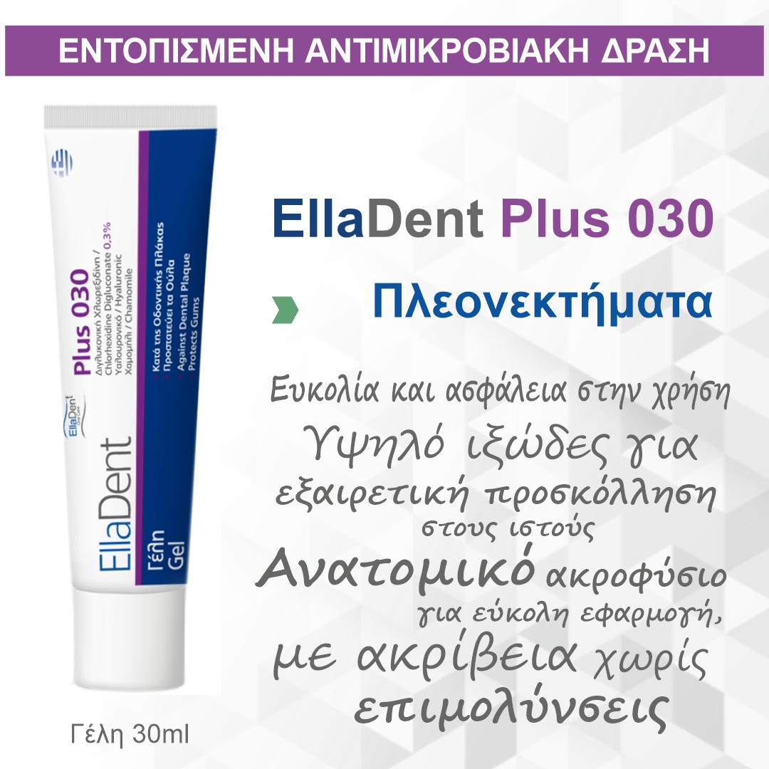 EllaDent Plus 030 Γέλη για την εντατική αντιμικροβιακή & επουλωτική δράση σε προβλήματα της στοματικής κοιλότητας, 30ml