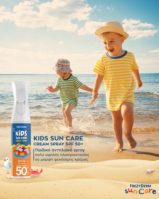 Παιδικό αντηλιακό spray FREZYDERM KIDS SUN CARE CREAM SPRAY SPF50 πολύ υψηλής ηλιοπροστασίας σε μορφή ψεκάσιμης κρέμας.