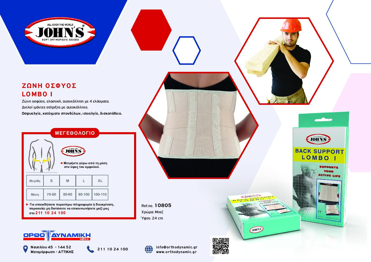 Johns Ζώνη Οσφύος 10805 Medium Ύψους 24cm σε Μπεζ χρώμα Lombo I