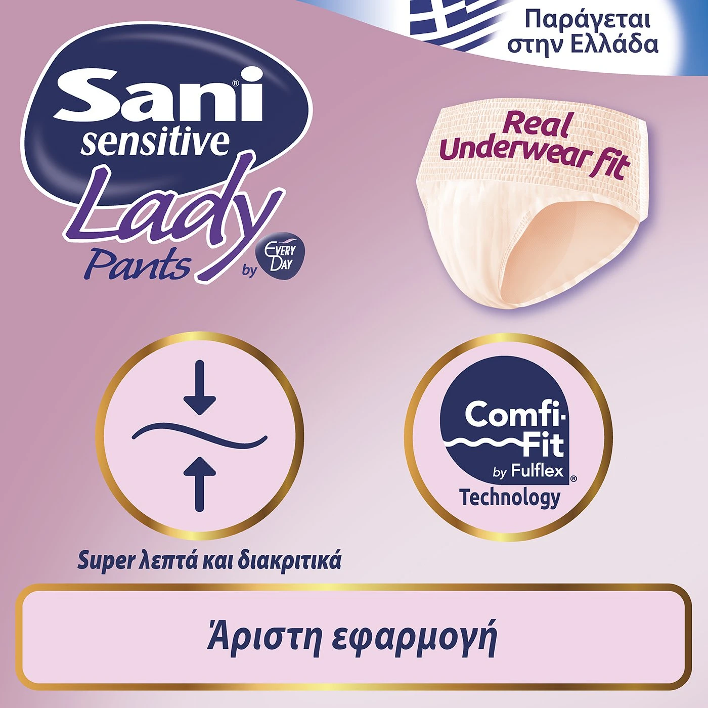 Sani Sensitive Lady Pants Discreet Ελαστικό Εσώρουχο Ακράτειας 12 Τεμάχια No3 Large