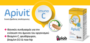 Το Apivit imuno C αποτελεί μια εξειδικευμένη φόρμουλα με βιταμίνη C, ψευδάργυρο, βιταμίνη D3 & rose hip extract (εκχύλισμα αγριοτριανταφυλλιάς).